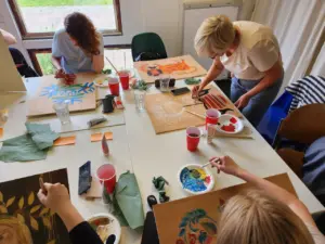 Am Samstag, den 7. Juni 2025, wurde unser Garten zum Ort der Begegnung, des kreativen Austauschs und der inneren Reflexion. Unter dem poetischen Titel „Territorium der Liebe: Gärten unserer Seelen“ leitete die ukrainische Künstlerin Kateryna Goncharova einen besonderen Workshop, der Natur, Kunst und persönliche Geschichten miteinander verband.
